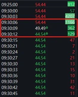 早上开盘涨停价54.44元买入的投资者,刚买入就遭厄运打击,瞬间跌至44.54元,数字非常相似,却已经少了18.19%。
