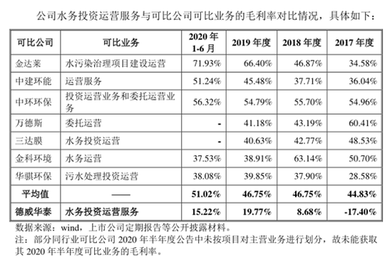 水务投资运营服务毛利率低于同行 部分项目甚至为负