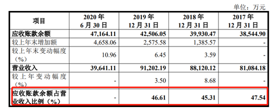 报告期内,该公司应收账款余额占营业收入的比例长期维持45%以上,其中一年以内的应收账款余额占应收账款余额的比例分别为54.23%、56.15%、62.81%和61.75%。
