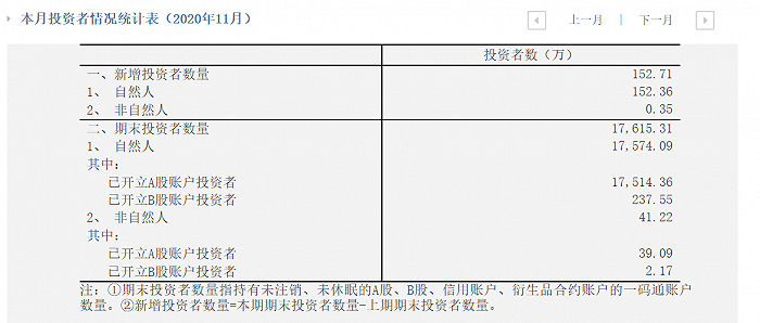 截至11月末,期末投资者数总计17615.31万,同比增长10.83%。今年以来,累计新增投资者已达到1639.92万。
