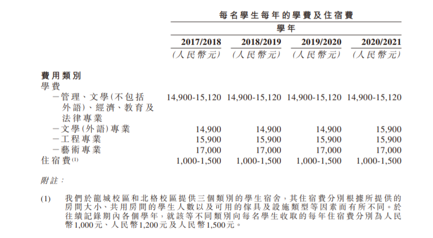 通才教育营收的主要来源就是学费和住宿费,其中学费占营收比例超90%。根据财报,通才教育向本科生提供学士学位项目,共有36个专业及3个专业方向。最近四个学年,除了文学(外语)专业在2020/2021学年提高了1000元学费,其他学科的学费没有变化。