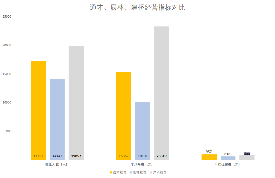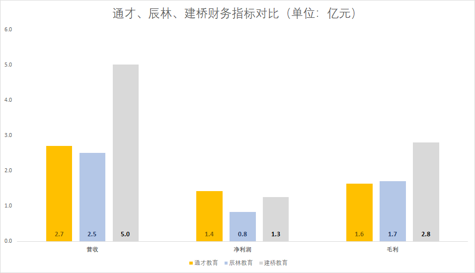 在营收上,通才教育与辰林教育基本持平,只接近建桥教育的一半;而毛利则低于另外两家机构。之所以营收水平差距如此之大,主要因为学费价格的差异。