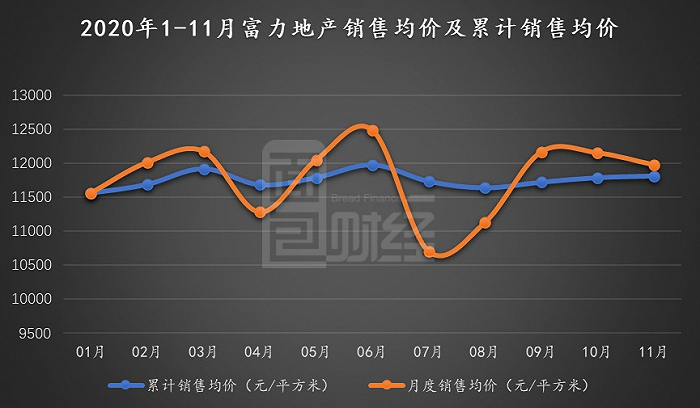 根据销售额及销售面积计算,富力地产11月销售均价为11977.03元/平方米,同比增加11.55%。1-11月公司累计销售均价为11810.32元/平方米,同比增加9.99%。