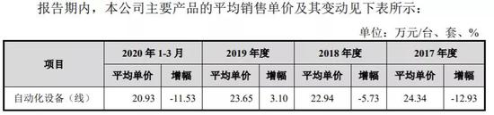 产品单价方面,受苹果订单产品类型及功能参数调整的影响,报告期内博众精工主要产品自动化设备(线)的平均单价分别为 24.34 万元/台、22.94 万元/台、23.65 万元/台及20.93 万元/台,总体呈下降趋势。