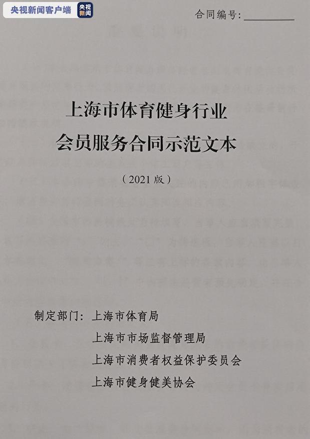 12月28日,《上海市体育健身行业会员服务合同示范文本(2021版)》正式发布,首批15个上海主要健身品牌400余家门店率先承诺履行和使用《会员服务合同》。《会员服务合同》将于2021年1月1日起正式推广使用,旨在化解健身领域的消费矛盾,维护消费者的合法权益,提升健身行业服务规范。这也是全国首个由行业部门、行业协会联合市场监管、消保委制定的健身行业会员服务合同示范文本。