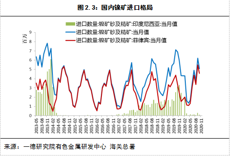 2.1 年内疫情因素叠加天气因素,菲律宾镍矿供应量差于预期,国内镍矿持续偏紧