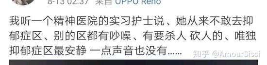 网络上从不缺少胡编乱造,对于抑郁症病房,也充斥着一些无意义的描述。有人说精神病院最闹腾了,只有抑郁症病区是没有声音的,这些没有考据也不是事实的话语,形象化了抑郁症患者,给每一个只是生病了的凡人带来了更多没有尽头的深渊。
