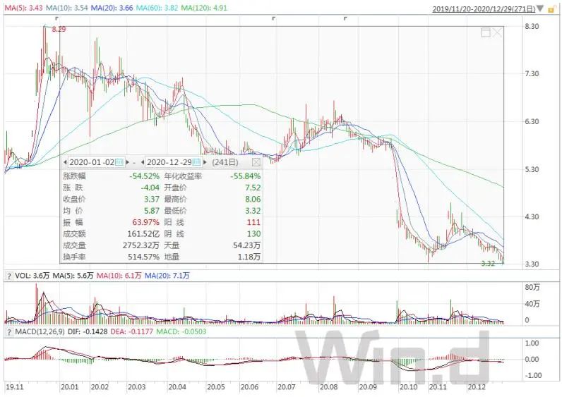 2015年期间,凭借着网游和互联网的炒作,公司股价于当年6月5日创下38.84元的历史高点,最高市值达到200亿元以上,如今已不足5亿元,最新股价与市值较历史高点回撤幅度达97.76%。