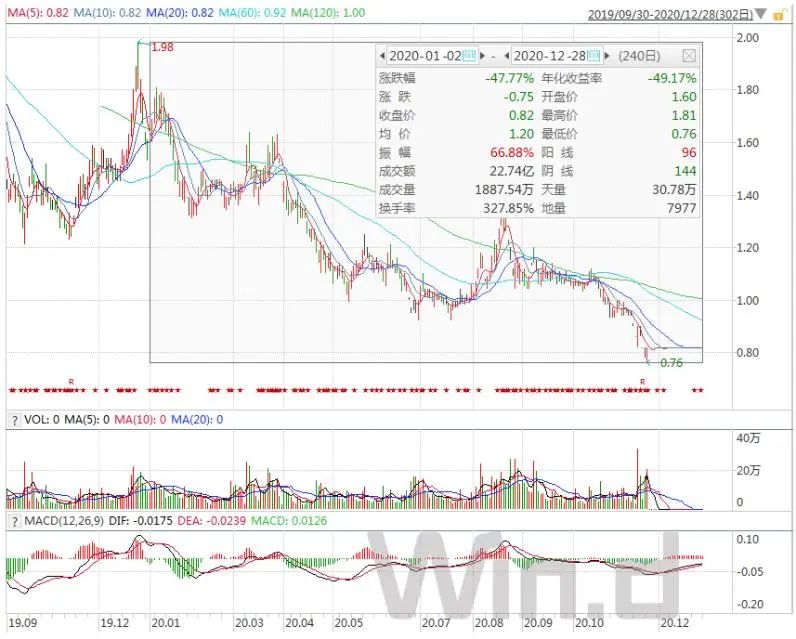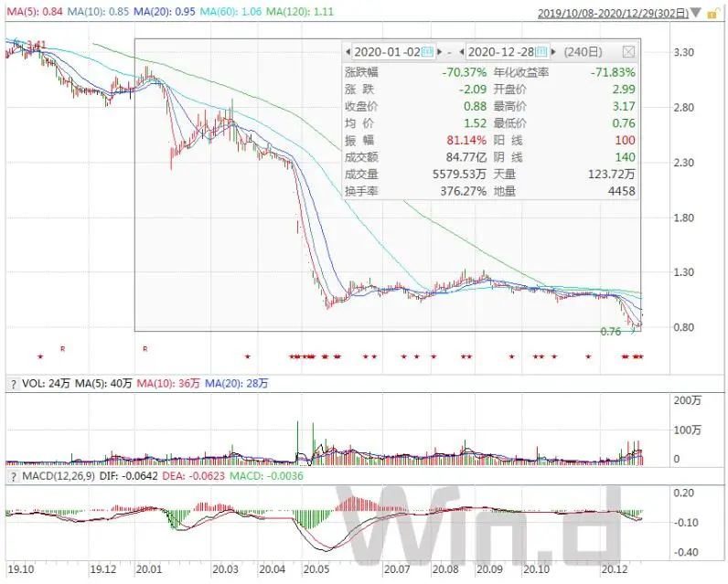 *ST宜生作为2020年的十大熊股之一,年内跌幅近70%。