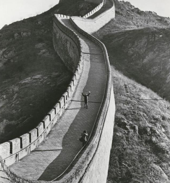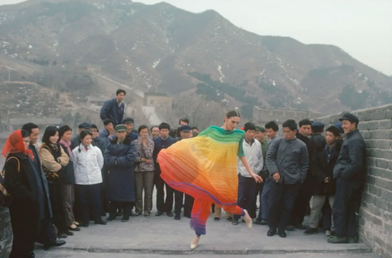 ·1979 年,长城上穿着“皮尔·卡丹”时装的模特。