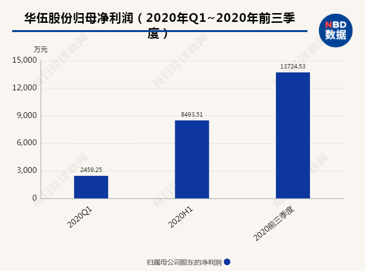 2020年前三季度,华伍股份实现营业收入9.34亿元,同比增逾三成,净利润1.37亿元,同比翻倍。