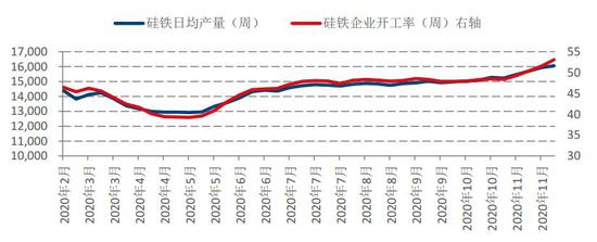 从略短周期的硅铁数据来看,11月硅铁企业开工率、产量均有所增加,预计11月产量继续环比提升。按照11月前三周的增产幅度来看,11月硅铁产量预估比10月环比提升4.44%,高于2019年水平但仍然低于2018年水平。