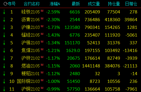 热点栏目12月31日,国内期市收盘多数上涨,油脂油料大涨,菜粕、豆粕涨逾4%,豆二涨近4%,黑色系走升,螺纹、热卷涨逾3%,铁矿石涨逾2%;能化品分化,乙二醇涨近5%,纸浆涨近4%,苯乙烯涨逾3%,短纤、塑料涨近3%,沥青跌逾2%,燃油跌逾1%;有色飘绿,沪镍跌近2%,沪锌、沪锡跌逾1%。