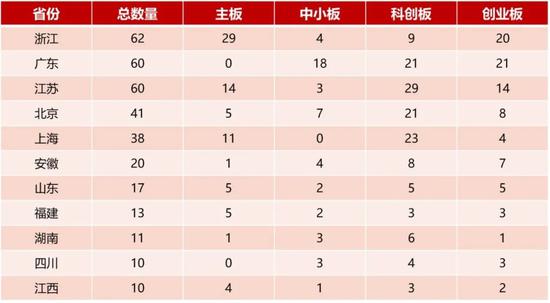除去3家注册在国外的公司(九号公司、中芯国际、华润微)外,浙江、广东、江苏三地上市企业包揽前三,均超过了50家。其他企业所在地情况如下: