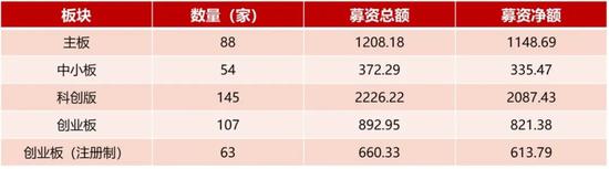 2020年,共有396家公司登陆A股市场(其中394家为首次公开发行,ST国重装为重新上市,东贝集团为B股转A股)。募资总额4699.63亿元,募资净额4392.97亿元。