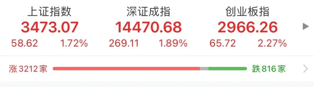 2020年收官日,两市股指强势上扬,上证指数创出2018年2月6日以来新高。上证指数收盘报3473.07点,涨1.72%;深证成指报14470.68点,涨1.89%;创业板指报2966.26点,涨2.27%。