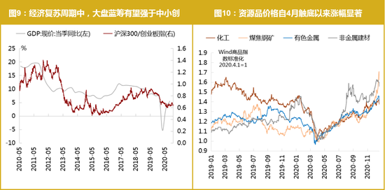 2021年一季度关注顺周期行业:受益于价格上升、盈利回升,资源原材料、金融、制造业往往在经济复苏中后期及PPI回升阶段表现较好;