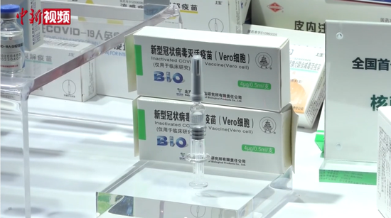 △(资料图)图为服贸会上首次亮相的国药集团展台上的新冠灭活疫苗图片来源于中新视频截图