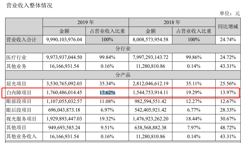 2019年报中,爱尔眼科提到了白内障业务转型的贡献。