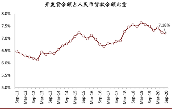 图表: 个人购房/住房贷款余额和开发贷余额占人民币贷款余额比重