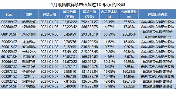 2021年新年伊始,A股迎来新一批限售股解禁。