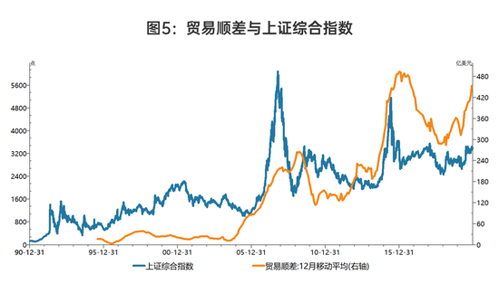 修复的资金驱动力来自哪里呢?我们观察到,中国A股市场估值的全面修复与泡沫,过去几轮都对应了贸易顺差和外汇占款的趋势性回升(如图5)。对于以美元为货币发行基础信用的中国,外汇占款相当于国家现金流量表的净现金流。历史上,净现金流趋势性上升与下降,都对应着人民币资产的重估。