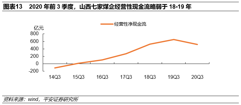 2020年4季度煤价大幅上行,2021年煤价或在较高水平,为煤企经营性现金流提供支撑,我们认为2020年煤企经营性现金流类似于18-19年,显著好于15-16年。