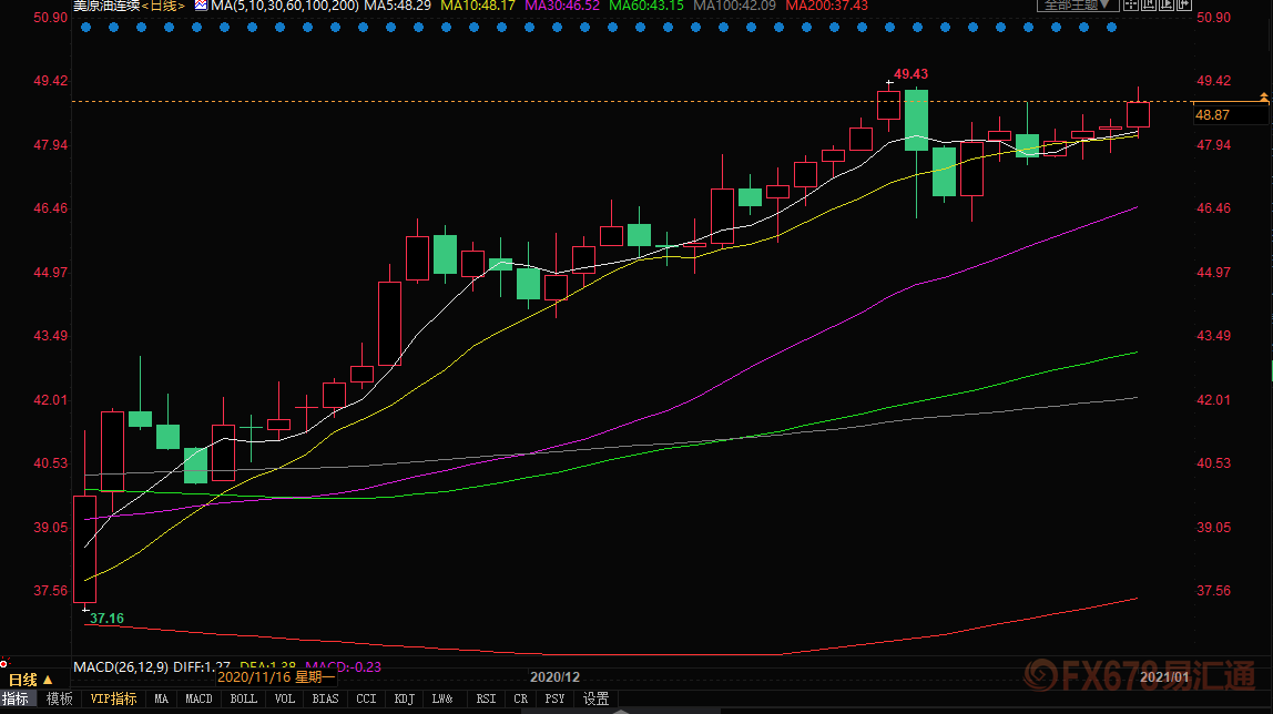 2020年最后一个交易日,美国原油的关键指标,西德克萨斯中质原油(WestTexasIntermediate)最终交易价为每桶48.44美元,最后结算价为48.52美元。2020年以来,该指数下跌了12.54美元,跌幅21%。