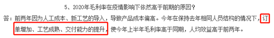 调研纪要则透露出更多关于公司盈利能力成长的“奥秘”。2020年毛利率如何在疫情影响下“愈挫愈勇”?公司表示,订单增加、工艺成熟和交付能力提升是主因。