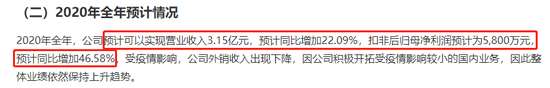 航亚科技在全年业绩预告中表示,公司2020年预计可实现营业收入3.15亿元,预计同比增加22.09%,扣非后归母净利润预计为5800万元,预计同比增加46.58%。