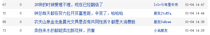 随着股价的一路走高,农夫山泉的股吧里也热闹非凡。