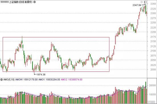 其次,从牛熊分界线来看,历史上的那两次平台启动时,上方都有一条牛熊分界线,而目前的这次平台启动,沪指已在牛熊分界线之上运行了大半年。所以,目前沪指上方已无明显的阻力。