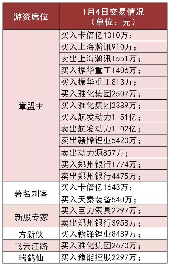 在军工股振华重工的席位中,“章盟主”动用旗下各个席位买入,其中一个席位买入1406万,另外一个席位买入813万。锂电池龙头雅化集团也是如此,“章盟主”此次动用旗下两个席位抢筹,其中一个席位买入2507万,另外一个席位也买入雅化集团2389万。另外“章盟主”在其他热门个股上做T,其中上海瀚讯,“章盟主”买入910万的同时旗下席位还卖出1551万。此外军工龙头航发动力的席位来看,“章盟主”买入1.51亿,同时还卖出航发动力1.02亿。