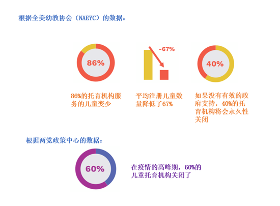 美国幼儿教育协会(NAEYC)研究结果显示,56%的托育机构每天都在亏损;44%的托育机构表示无法确定还能继续营业多长时间。
