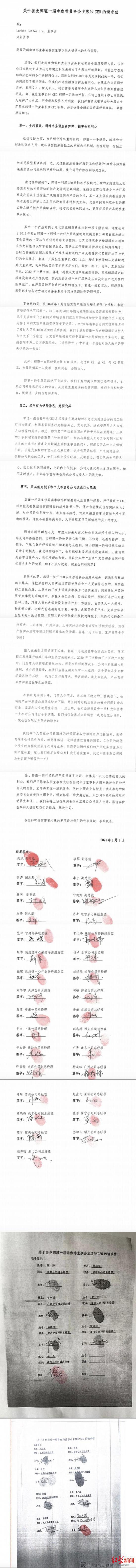 据称,这份联名名单几乎囊括了瑞幸所有分公司领导。