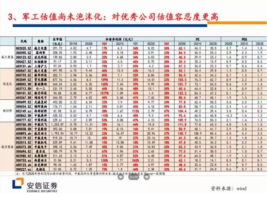 另外,PE来看,对于2021年,现在经过最近这一段时间的军工大幅上涨,我们以前多次提到军工可能在一季度全面开花,但是现在大家提前抢跑一些,比以前提前一部分时间,但还会出现全面开花的情况。