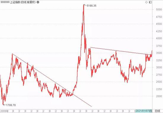 就大市方面来看,前几天牛眼君认为,若沪指收盘站上3558点,那么沪指突破2015年底和2018年初顶部连线的概率较大。今天,沪指收盘站上3576点,看来这次向上突破的概率较大了。
