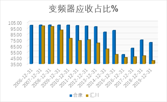 通过“变频器应收占比%”,我们可以看到,这两家公司在过去几年的变频器应收占比的变化非常大。