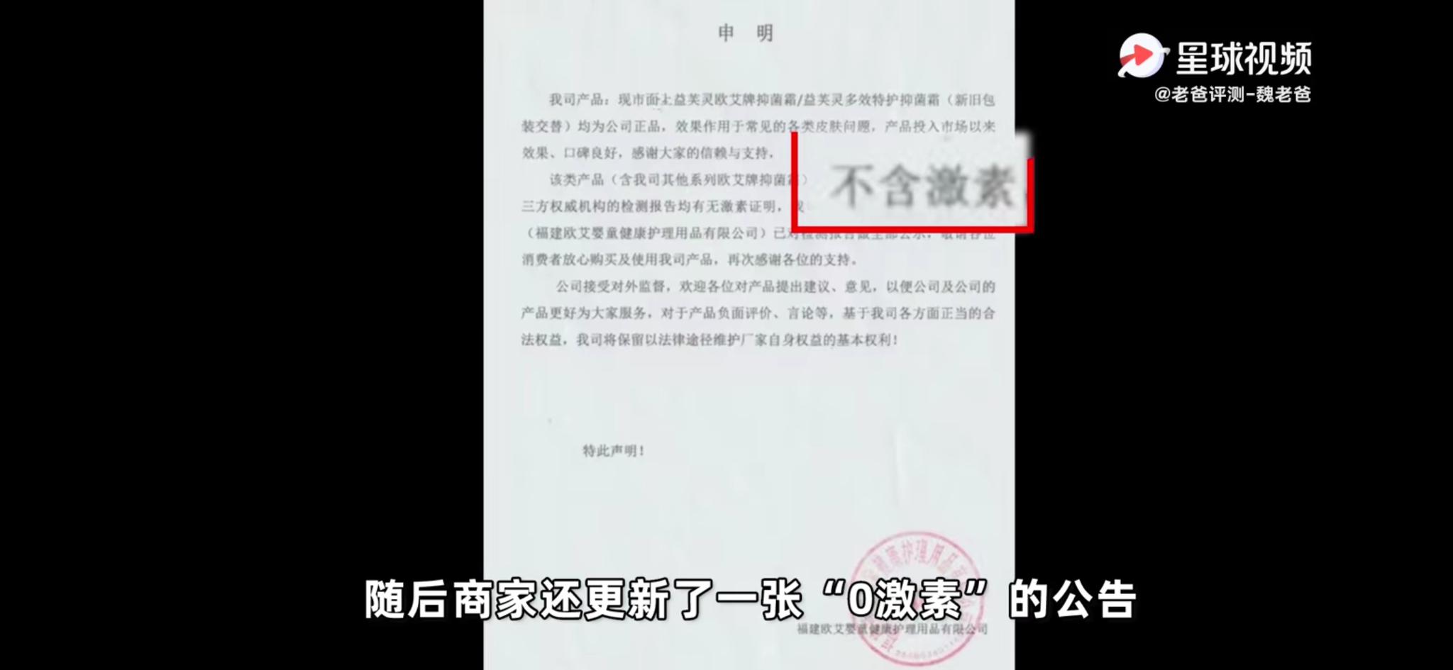 对于这款“抑菌霜”产品是否合格,“老爸测评”博主和福建欧艾各自出具了结果截然不同的检测报告。