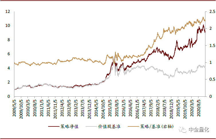 资料来源:万得资讯,中金公司研究部(截止于2020年12月31日;价值股基准为行业中性情况下,PB-ROE因子较低的三分之一股票构建的组合)