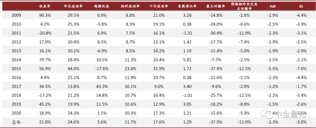 资料来源:万得资讯,中金公司研究部(统计期:2009-05-05 至2020-12-31,2009 年收益率为年化收益率)