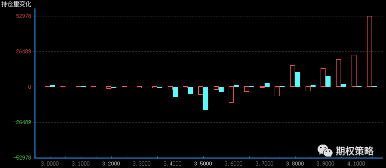 从1月持仓变化来看,认购在最虚值4100处增仓最大,认沽在3800处增仓最大,50ETF支撑压力均有上移迹象。