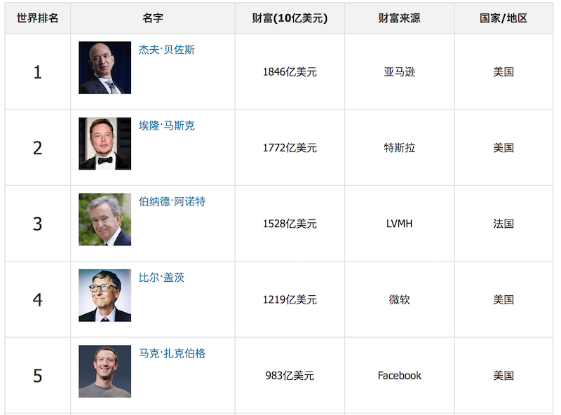 只有第三名伯纳德·阿诺特是来自法国奢侈品行业,其它统统都身处美国硅谷。