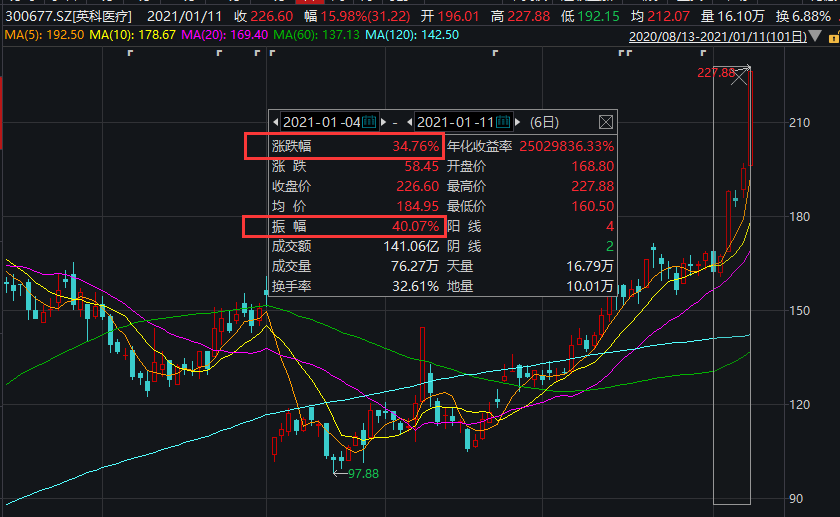 截至收盘,该股涨近16%,报226.6元,市值798亿元。从2020年1月11日至今,英科医疗的股价上涨了1500%。