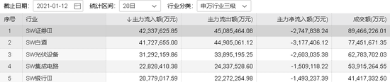 图2 近20日主力流入额排名前5位的行业,证券居首