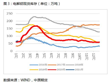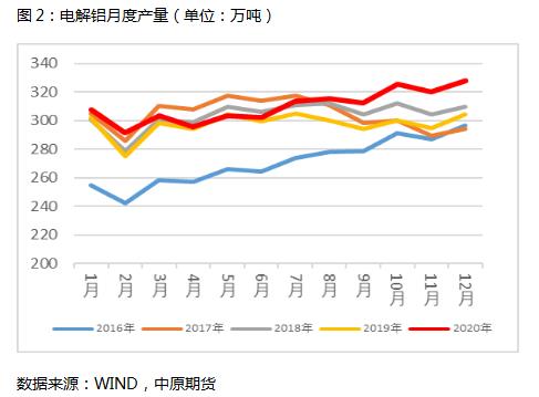 中游来看,SMM数据显示,截至1月初,全国电解铝运行产能增至3924万吨/年,建成产能规模4320万吨/年,全国电解铝企业开工率90.80%。进入2021年1月,SMM预计1月(31天)国内电解铝产量330万吨,2020年投产的电解铝项目将持续贡献增量;同时原铝进口量预计在15万吨左右;需求端看,12月下旬铝需求整体表现季节性转弱,行业正式进入累库周期,预计1月库存天数将升至7.7天左右。