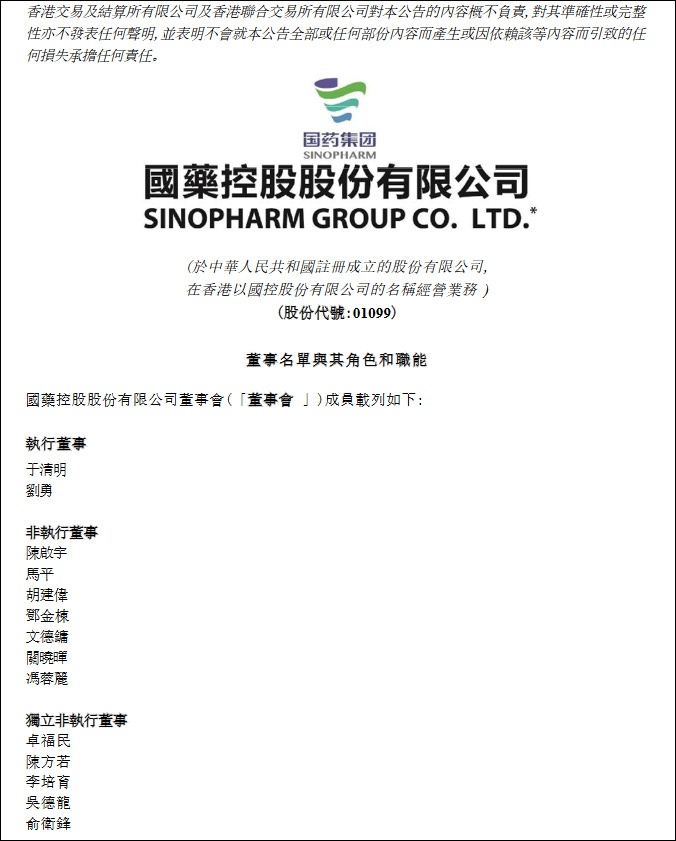 随后,国药控股又发布公告,介绍了该公司董事会成员。