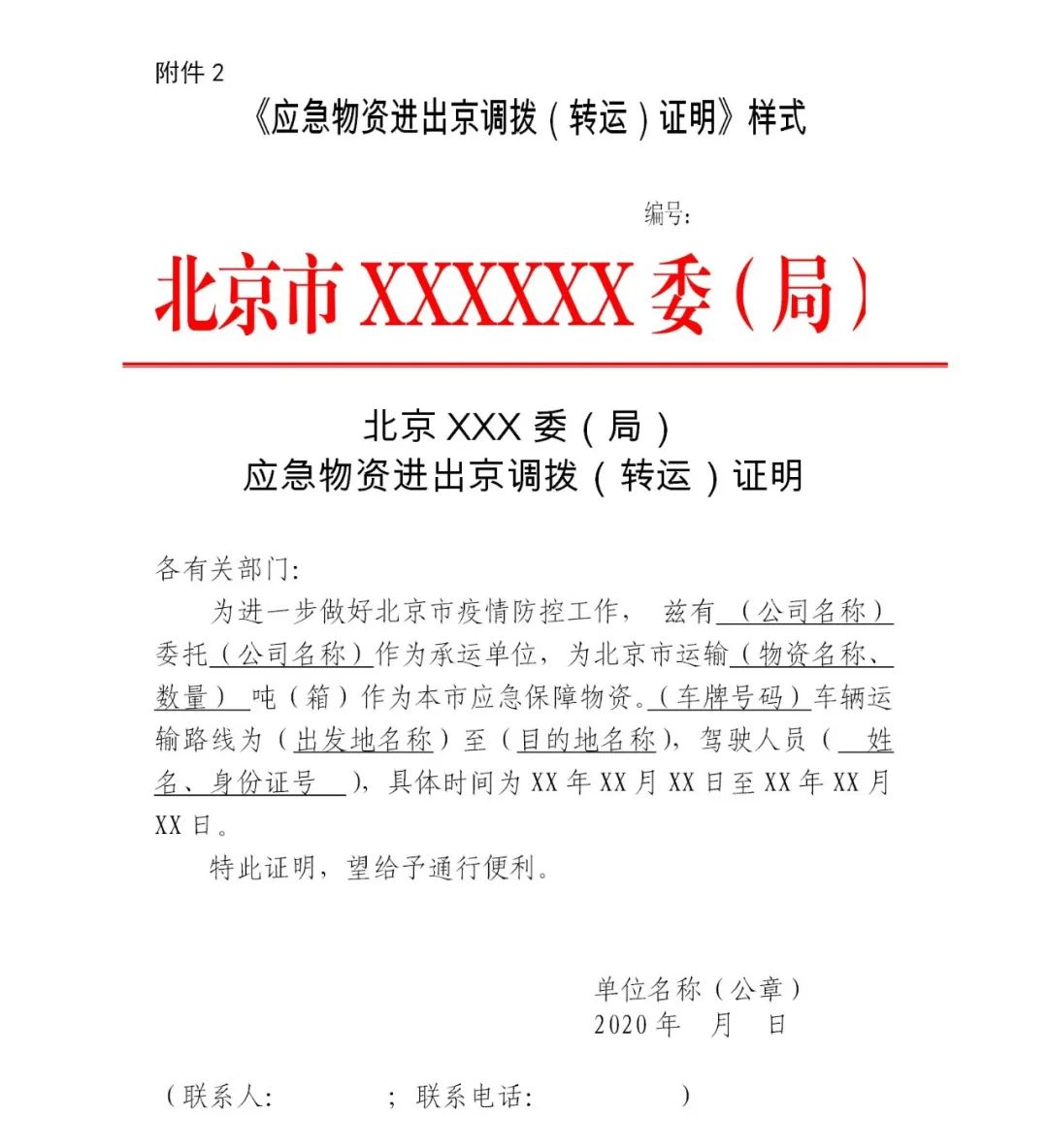 各省级交通运输主管部门要按照《关于切实做好常态化疫情防控加强北京地区鲜活农产品等重点生产生活物资运输保障工作的通知》(交运明电〔2020〕205号)有关要求,全力做好北京地区鲜活农产品等重点生产生活物资市场供应。对于运送进京生产生活物资穿行河北省的非河北籍人员及车辆,凭北京市各有关委(局)制发的《应急物资进出京调拨(转运)证明》(见附件2)予以优先便捷通行。对于运送进京生产生活物资的河北籍车辆需持《应急物资进出京调拨(转运)证明》,司乘人员需符合首都严格进京管理联防联控协调机制有关核酸检测要求。