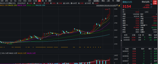 早盘开市后,国内饲料市场也是应声而起,其中首当其冲的就是内盘菜粕期价。菜粕行情近来本就是炙手可热。由于受到美豆价格强势上行影响,菜粕紧随其后混的那是一个风生水起,再加上受到自身供应面的逐渐趋紧,国内需求旺盛,库存压力下滑等基本面逻辑加持,其价格反复爆发,多头炒作接连不断。那么,在如此强势的拉升下,菜粕后续行情又该如何演变呢?短期来看,还能继续独领风骚吗?反观现在的基本面情况又是怎样的呢?截至2021年1月13日,菜粕期货主力2105合约收盘报在3154元,尾盘强势封住涨停。