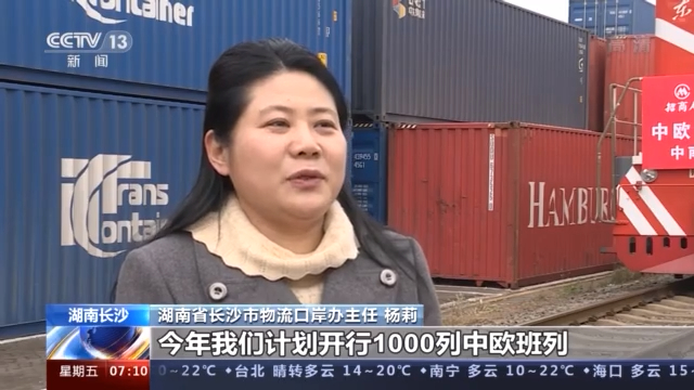 湖南省长沙市物流口岸办主任 杨莉:今年我们计划开行1000列中欧班列来满足不断增长的制造业和外向型经济企业对国际物流通道的需求,助力湖南产业发展。(总台央视记者 刘颖 徐宁宁 高睿 李超 张军 湖南台 浙江台 山东台 舟山台)